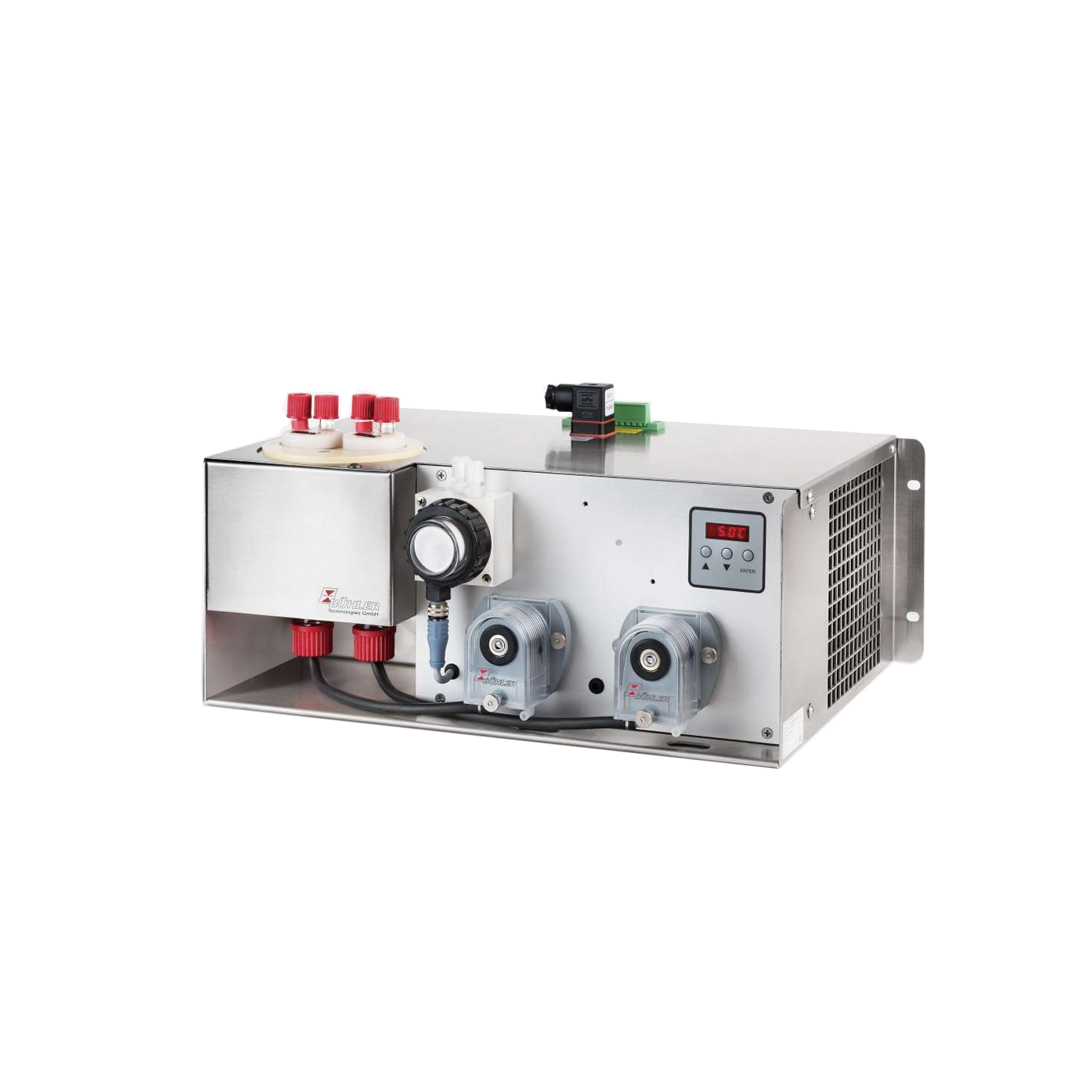 比勒制冷器RC 1.2+系列的特征在于使用新一代的換熱器,其具有對水溶性組分特別低的沖洗效果且特別適于排放監測。特別是,SO 2的浸出效果很低。因此, 比勒制冷器RC 1.2+可用于根據EN 15267-3的自動測量系統(AMS)。