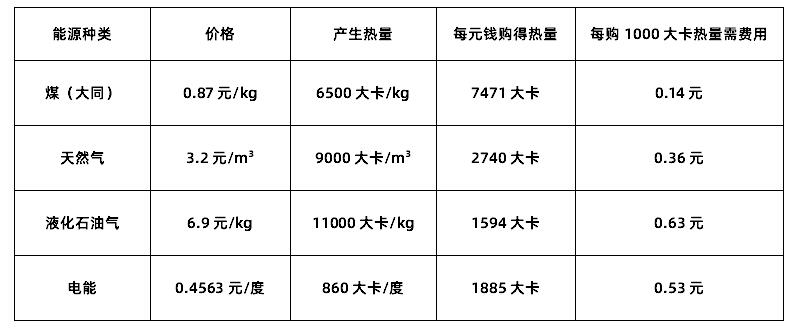 通過上表比較可見使用煤最便宜,但是既不環保也不方便;其它