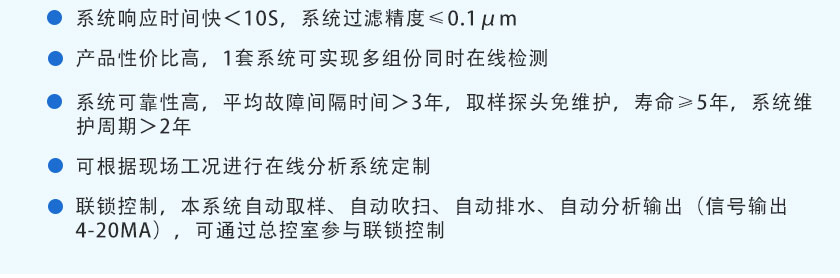 • 在線煤氣分析系統 TY-8300 TY-8300型煤氣在線分析系統是天禹智控自主研發新型在線監測系統,該產品基于非分光紅外(NDIR)氣體分析技術、長壽命電化學傳感技術以及基于MEMS的熱導技術,可同時在線測量煤氣的熱值,以及CO、CO2、CH4、H2、O2、CnHm等氣體的體積濃度。預處理系統采用冷干法設計,關鍵部件采用原裝進口,可根據現場不同的工況條件,為客戶定制解決方案,保證分析系統的可靠運行。
