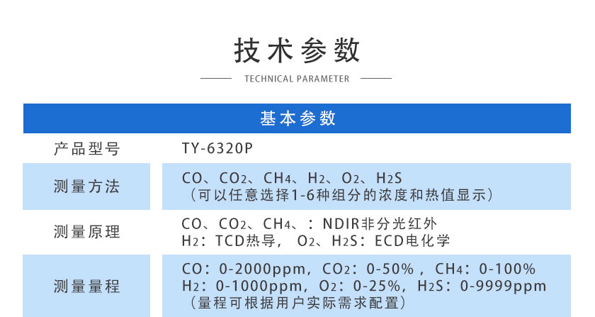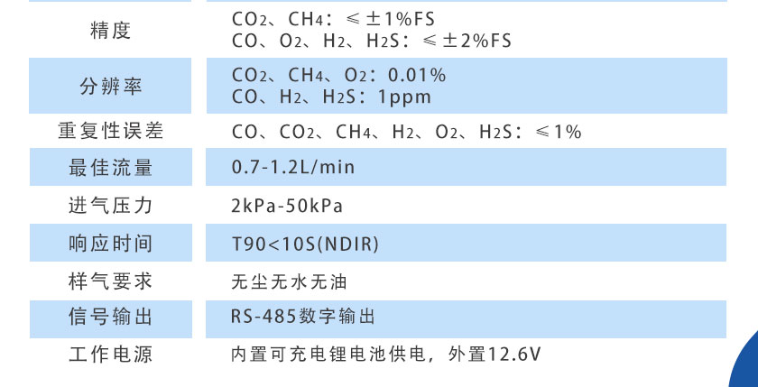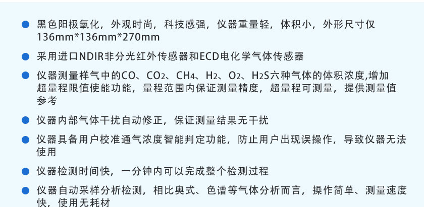 CO、CO2、CH4:NDIR非分光紅外;H2:TCD熱導(dǎo);O2、H2S:ECD電化學(xué)