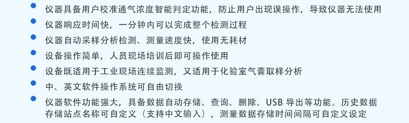 (11)設(shè)備既適用于工業(yè)現(xiàn)場連續(xù)監(jiān)測,又適用于化驗室氣囊取樣分析。